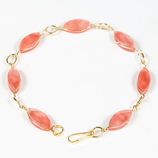 05 Pulseira Navete Ranhurado Quartzo Cherry Dourado ATACADO Pulseira Navete do Elo Dourado com Pedra Quartzo Cherry ótimo Brilho Pulseira com elo Amarrando o Navete Ranhurado em forma de Elo na Corrente, Peça bem Delicada e com uma Levesa Maravilhosa