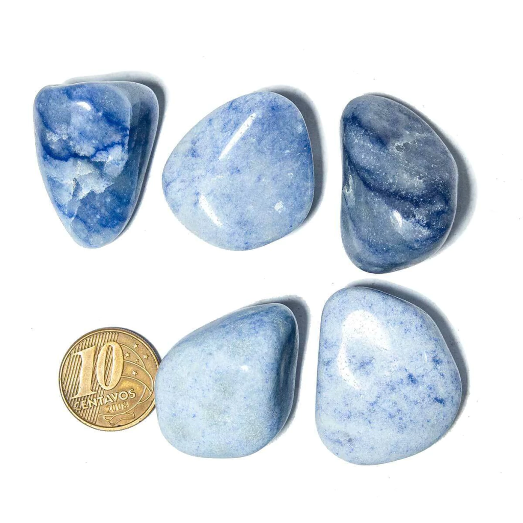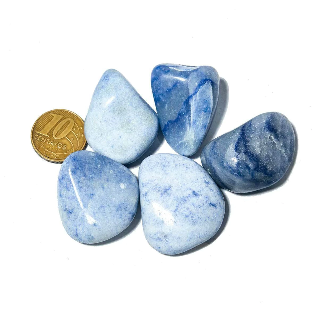 Tipo de Pedra: Quartzo Azul Natural (rolado para brilho intenso)