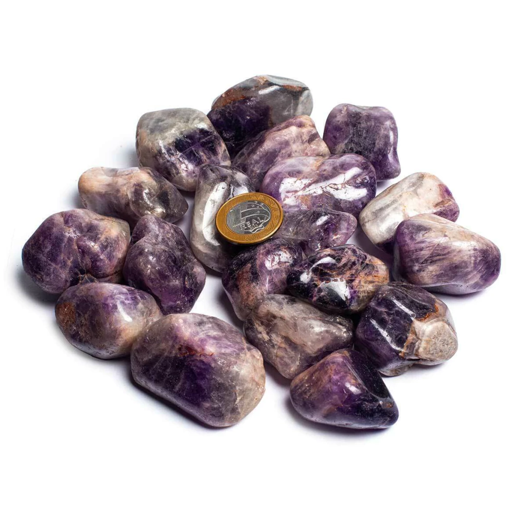 Explore a beleza e a energia da Ametista com nosso pacote de cristais rolados, extraídos nas minas de Minas Gerais e lapidados com maestria pela CristaisdeCurvelo. Cada pedra, de qualidade média e cor roxa delicada, oferece uma transparência ideal para práticas esotéricas, com lapidação que proporciona excelente brilho e aproveitamento.