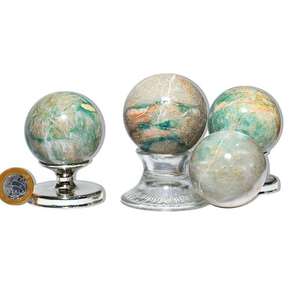 Tamanho das Esferas: Aproximadamente de 20 a 90 mm (varia conforme estoque)