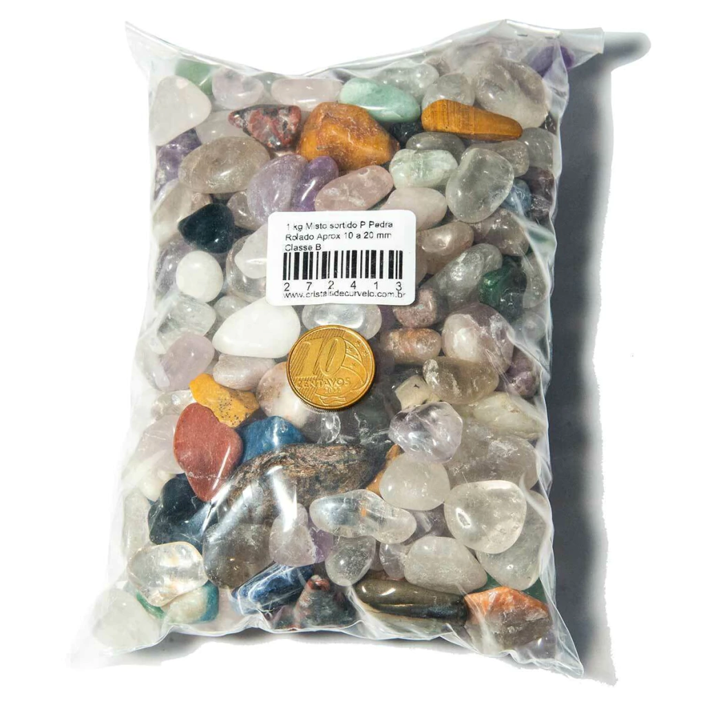 1kg de pedras roladas mistas, de baixo custo e valor comercial.