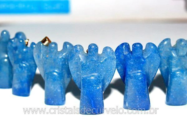 Kit com 10 Anjinhos de Pedra Natural – Quartzo Azul Aventurina Azul para Chá de Bebê