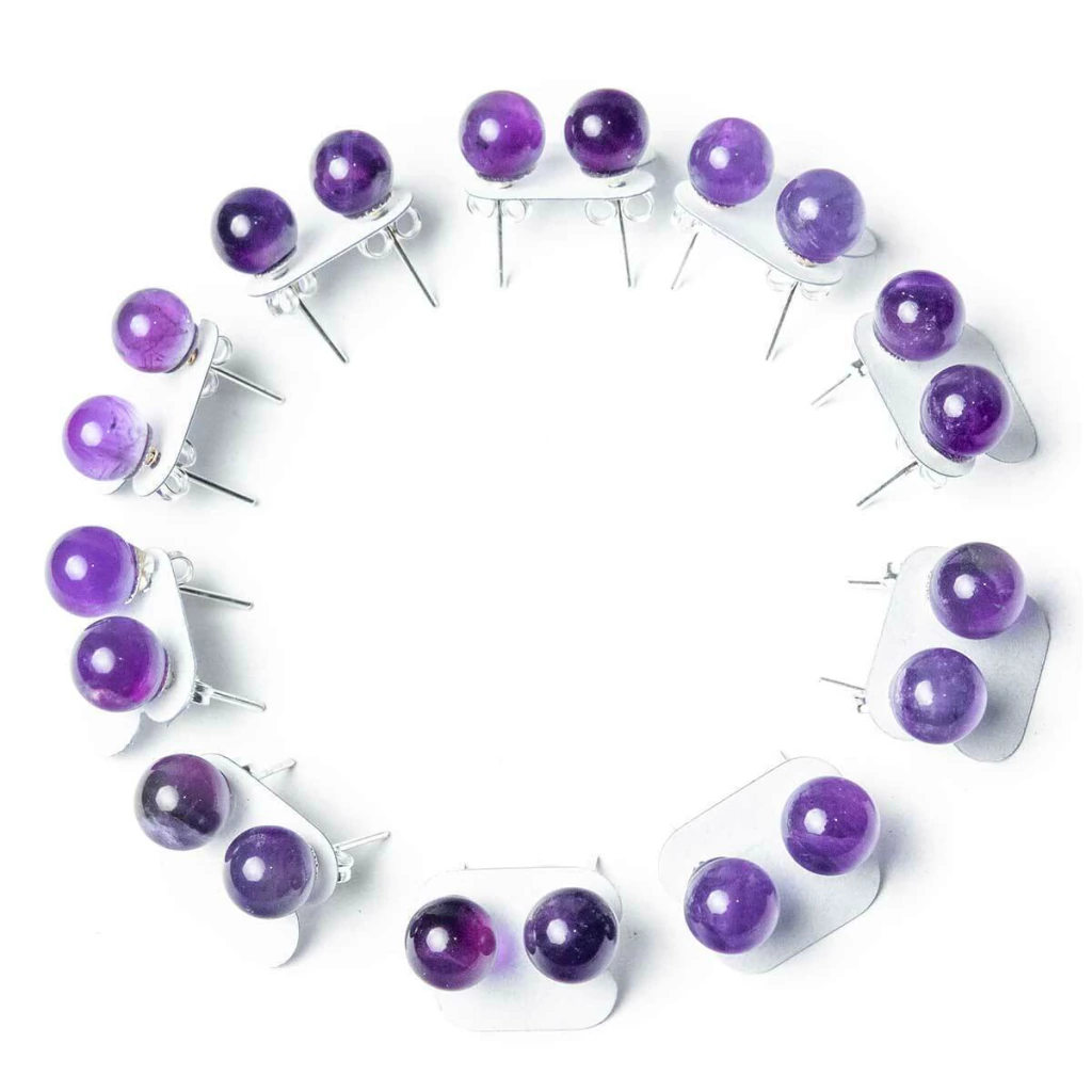 10 Brinco Bolinha Pedra Ametista Extra Natural Tarraxa Banho Prateado, Brinco com Pedra de Garimpo Bolinha com pino e tarraxa banhado prateado, lapidação manual totalmente artesanal com polimento em vibrador a montagem é feita em banho flash prateado