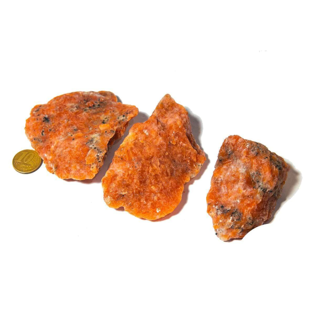 Cada unidade apresenta formato bruto e variações únicas, preservando toda a essência da natureza. A cor alaranjada é resultado da presença natural de óxido de ferro, o que torna cada pedra especial e única.