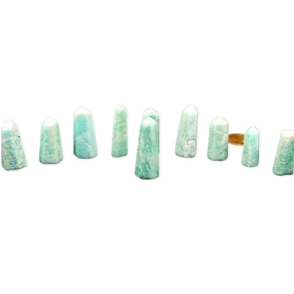 10 Mini Pontinha AMAZONITA Lapidado Furado NA LATERAL manualmente, mineral quartzo natural furo vazado na lateral da base da pedra espessura do furo 1 mm aproximadamente para montagem de colar ou pulseira, lapidação gerador e bom brilho muito utilizado em mandalas, energização por canalizar a energia orgone