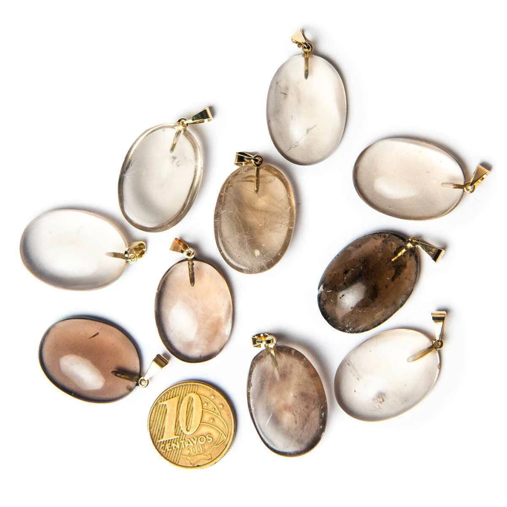 Pingente Pedra Quartzo Fumê Lapidação Cabochão Oval, mineral de garimpo pedra com ótima cor natural