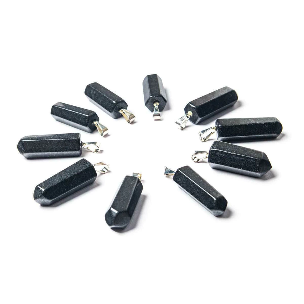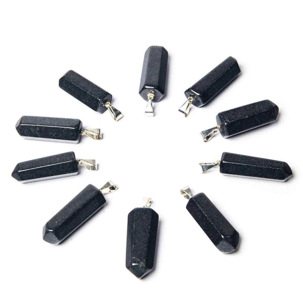 10 Pingente Masculino Pontinha Quartzo Preto Presilha e Pino Prateado ATACADO