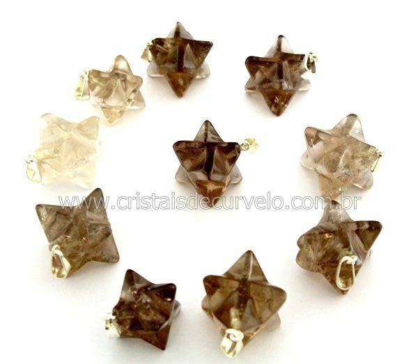 10 Pingente Merkaba Pedra Quartzo Fumê natural de garimpo pedra lapidado em formato estrela merkaba