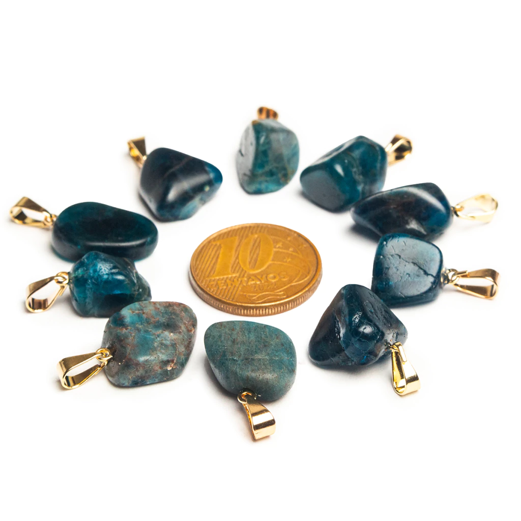 PEDRINHA APATITA Pingente Pedrinha Rolado APATITA Natural mineral verdadeiro de garimpo excelente preço, montagem com pino e perinha em Dourado, recomendado para pulseiras ou crianças
