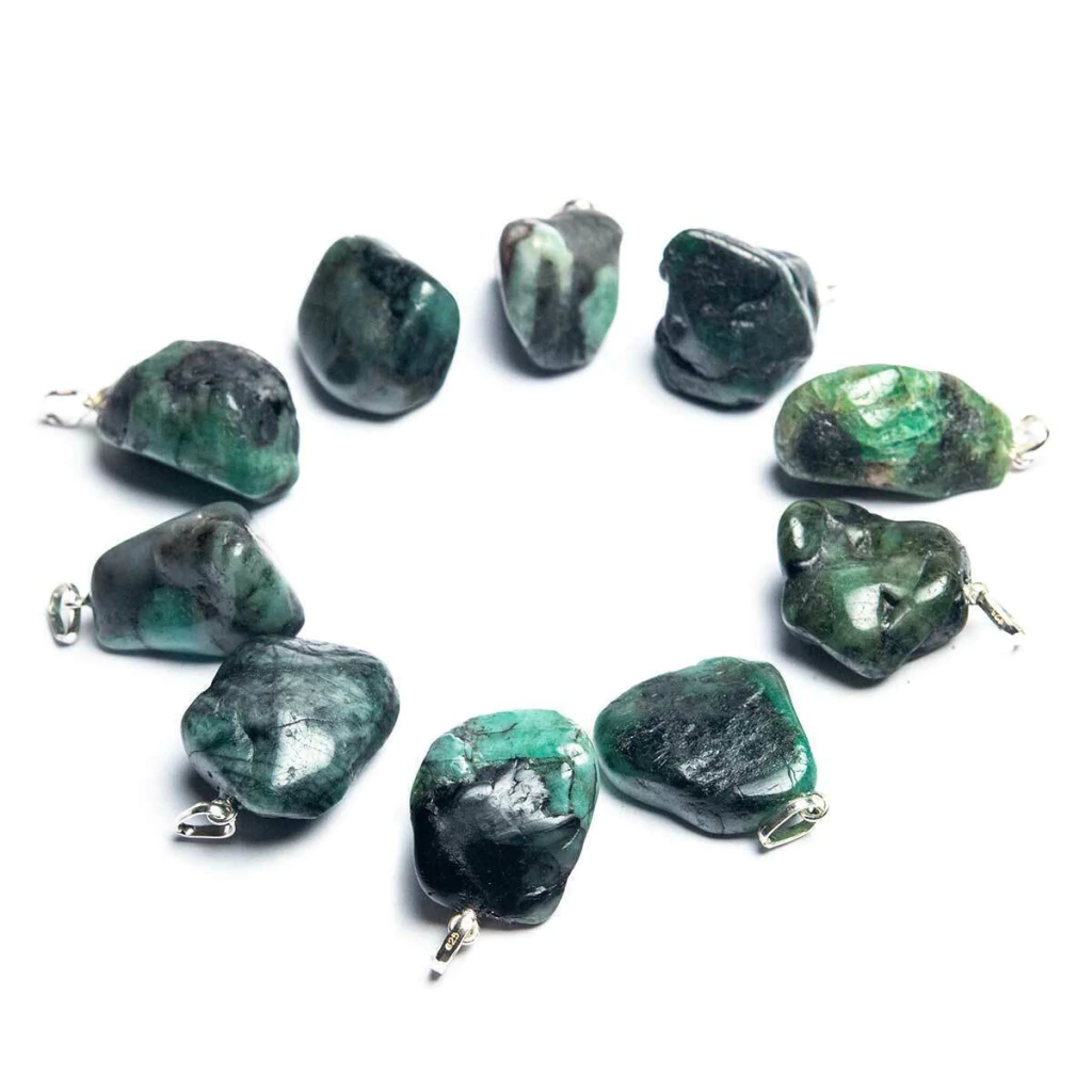 10 Pingente Pedrinha Esmeralda Verde Natural castoação Prata 950 PRATA DE LEI