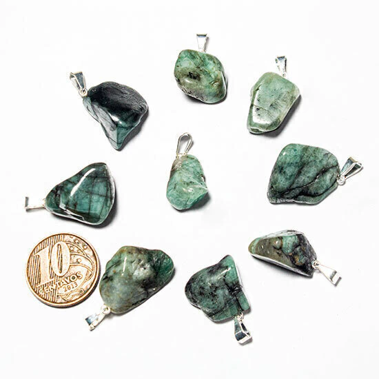 Kit 10 Pingentes de Esmeralda Verde Natural - Montagem Manual em Banho Prateado