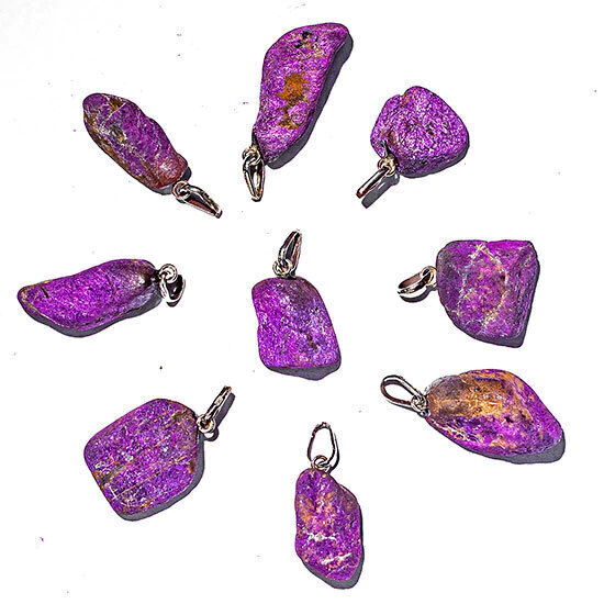 10 Pingente Pedrinha Purpurita Natural Montagem na Prata 950 PRATA DE LEI com Pino e Perinha na Pedra, origem garimpo com lapidação e montagem manual. Anúncio de atacado. A Purpurita é associada aos chacras da cabeça e favoreceria o pensamento liberado das obrigações materiais. Ela nos liberaria das preocupações que nos bloqueiam e favoreceria a tomada de consciência de nossas necessidades espirituais. Seria um revelador de nossas capacidades não exploradas elevando nosso nivel de consciência.