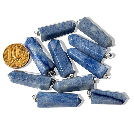 10 Pingente PONTA de Quartzo Azul pedra de garimpo com lapidação artesanal montado no dourado , ideal para colar e pulseiras, ja vai montado