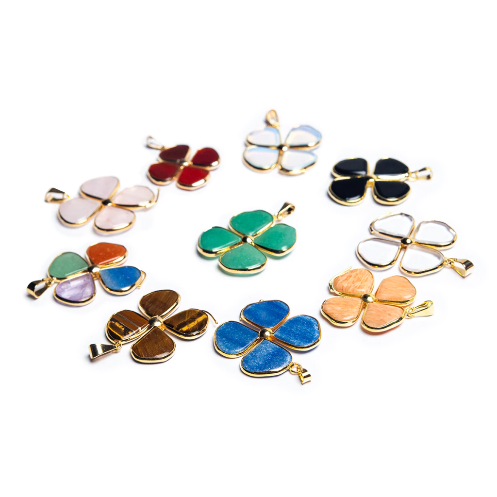10 Pingentes Trevinho Misto em Pedras Naturais – Atacado Artesanal com Banho Flash Dourado