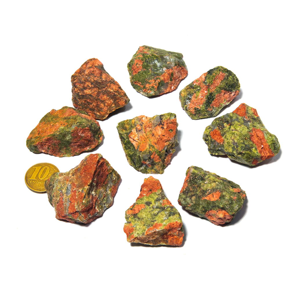 A Unakita é uma pedra semipreciosa de tonalidades verdes e rosas, composta principalmente por feldspato, quartzo e epidoto. É valorizada tanto pela beleza como pelas propriedades energéticas de bem-estar e equilíbrio.