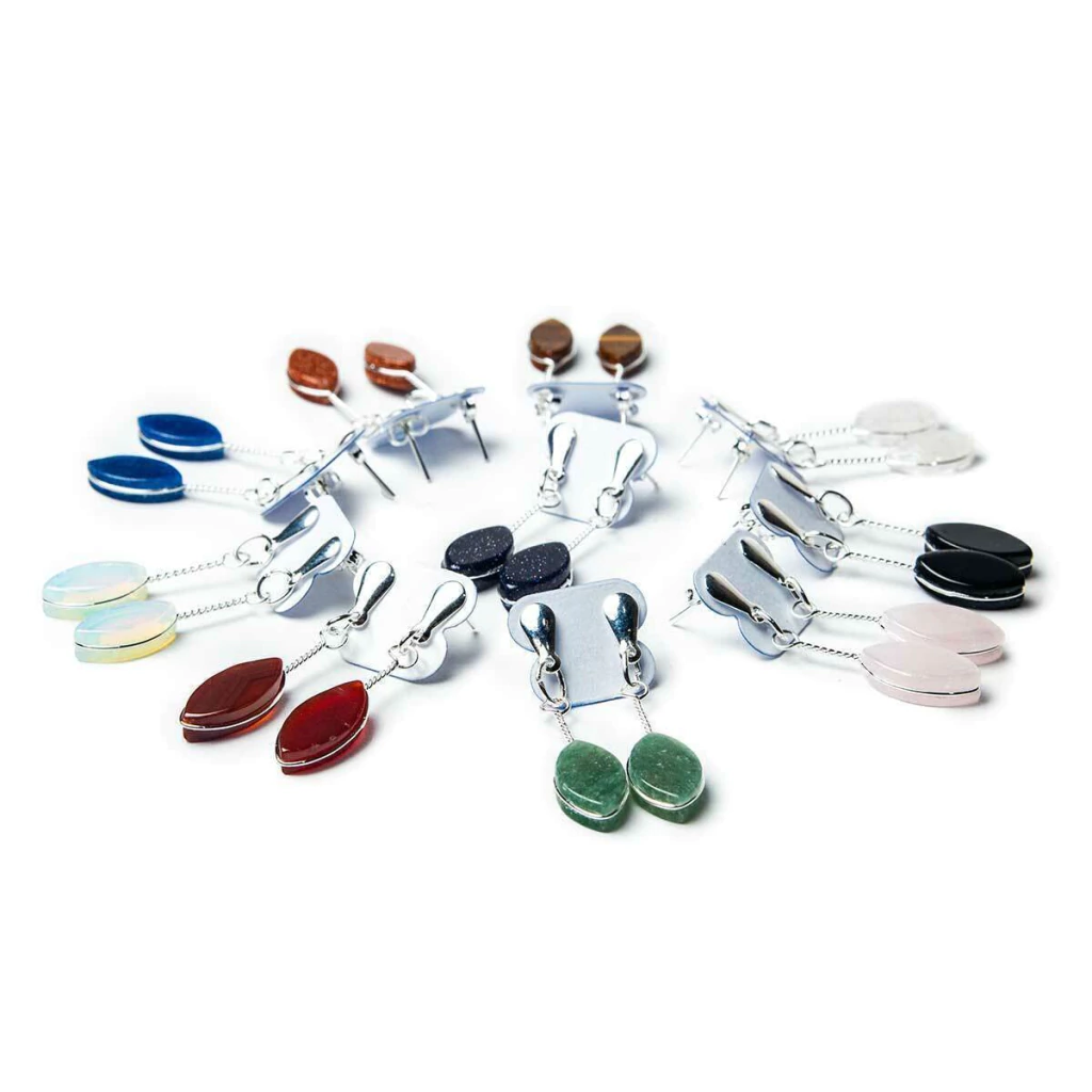 100 Brinco Pedras Mistas Lapidado Navete liso com pino e tarracha Prateado, lapidação manual totalmente artesanal com polimento em vibrador a montagem é feita em banho flash Prateado