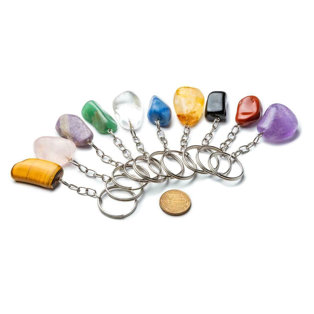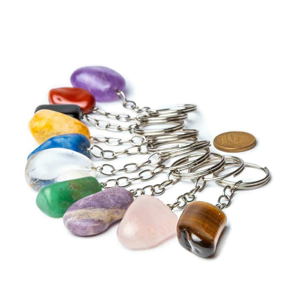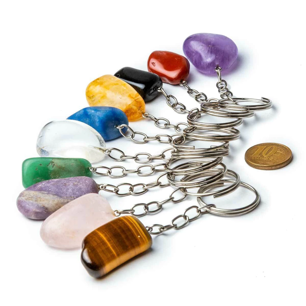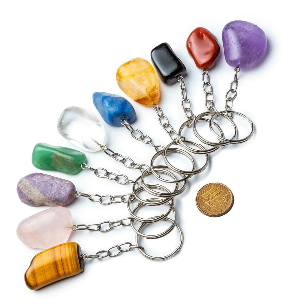 100 Chaveiros de pedra natural para revenda, preço no atacado pedras mistas Rolada a Montagem consiste em: Argola para chaveiro + Corrente Prateada + uma Pedra Rolada Pedra Natural de Garimpo assim você tem um poderoso talismã ideal para o seu dia a dia