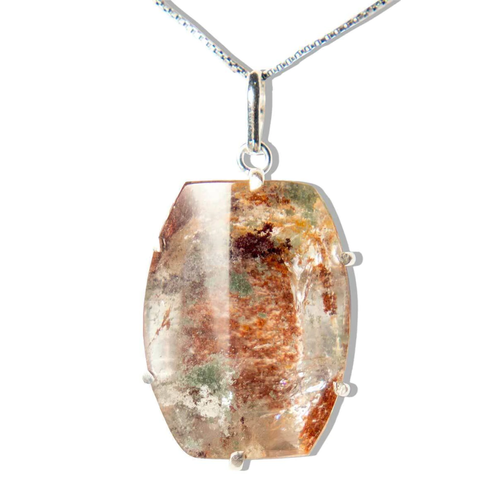 3 Pingentes Gema Cristal com Inclusão de Lodolita Facetado Montagem Prata 950 para revenda Pedra Cristal com Inclusão Lodolita e outras castoação na garra com perinha em Prata 950 para passar o cordão Pedra Genuina com origem garimpo lapidação e montagem manual