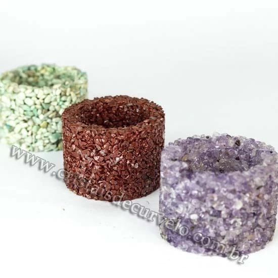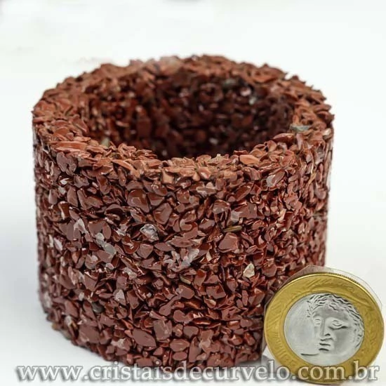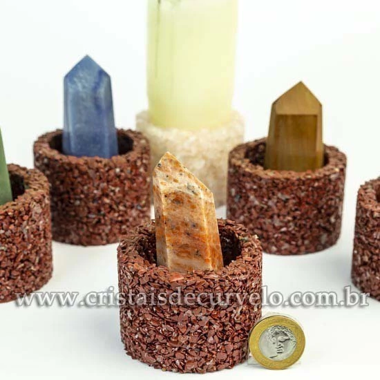 4 Porta Vela Pedra Jaspe Vermelho Rolada na Resina Valor Atacado, Vaso Cilindrico de Resina e Pedras Rolada Miuda, Lindo Ornamento Para Cozinha, Escritorio, Banheiro onde sua criatividade levar, 5cm de Altura com entrada para velas de no Maximo 5 cm de espessura, além de ser um excelente presente trás todos os beneficios dessa pedra por ser natural