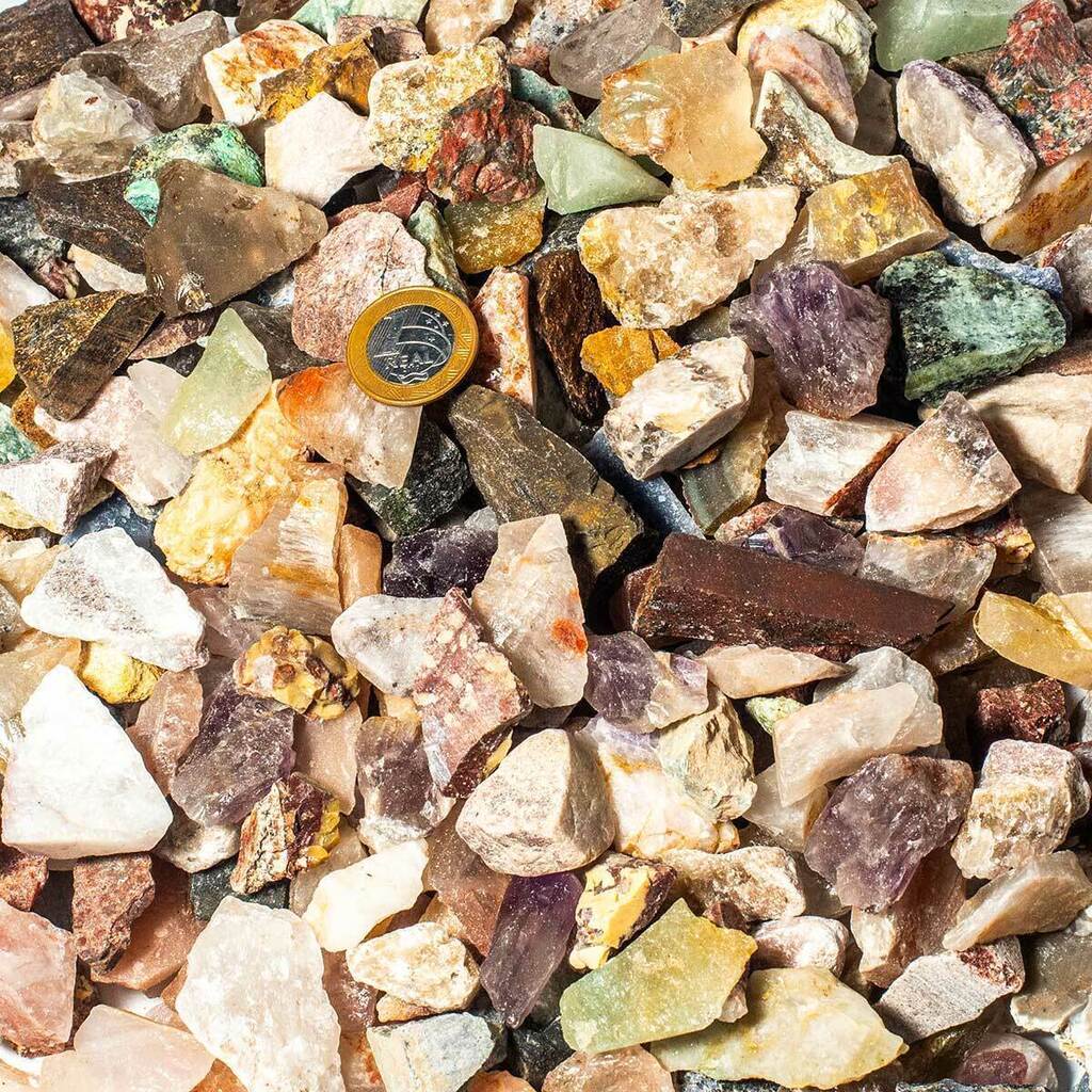 Nome das Pedras: Mistura de pedras brutas, incluindo, mas não se limitando a: Cristal, Quartzo Rosa, Verde, Bronzita, Hematita, Quartzo Fume, Azul, Esmeralda, Ametista, Amazonita, Rutilos, Lodolitas, Berilo e outras (a composição exata varia conforme o estoque)