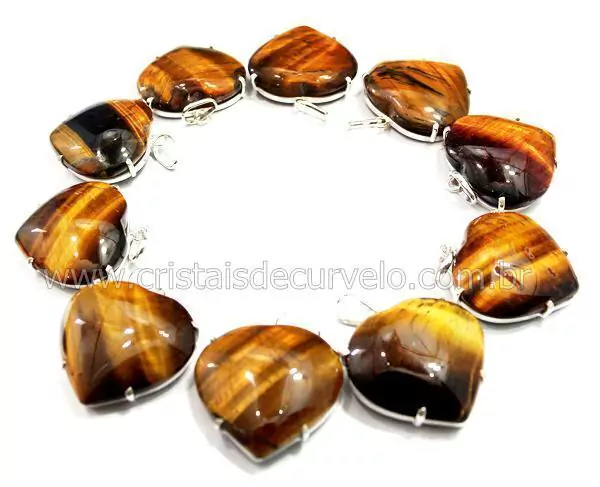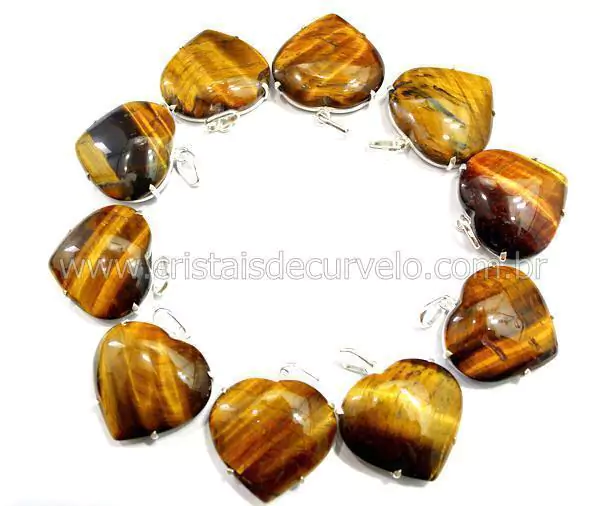 05 Pingente Coração Liso Pedra Olho de Tigre Para Revenda Valor em Atacado Pingente Montagem na garra com perinha em Prata 950 para passar o cordão Pedra Genuina com origem garimpo lapidação e montagem manual