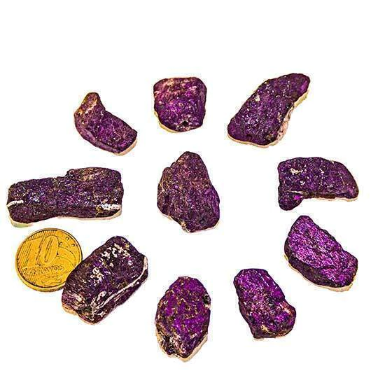 Kit com 5 pedras brutas de purpurita furada para montar colares, pulseiras e pingentes. Ideal para trazer energia espiritual e proteção.