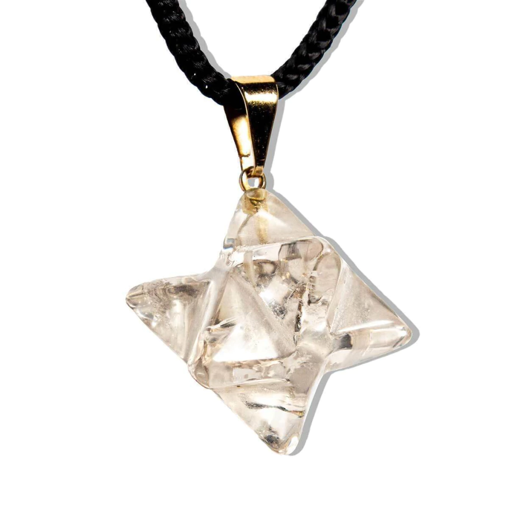 50 Pingente Merkaba Pedra Quartzo Fumê Natural de garimpo pedra lapidado em formato estrela merkaba Pino e Presilha com Banho em Dourado