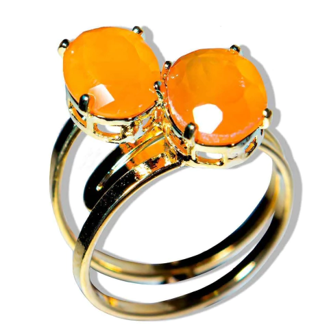Este anel artesanal com duas pedras de Ágata Cornalina facetadas une o poder vibrante da natureza ao seu estilo, proporcionando uma energia de vitalidade e entusiasmo. Com aro ajustável que vai do tamanho 12 ao 30, ele se adapta confortavelmente ao seu dedo, oferecendo praticidade e versatilidade.