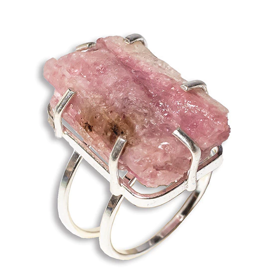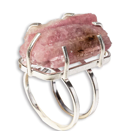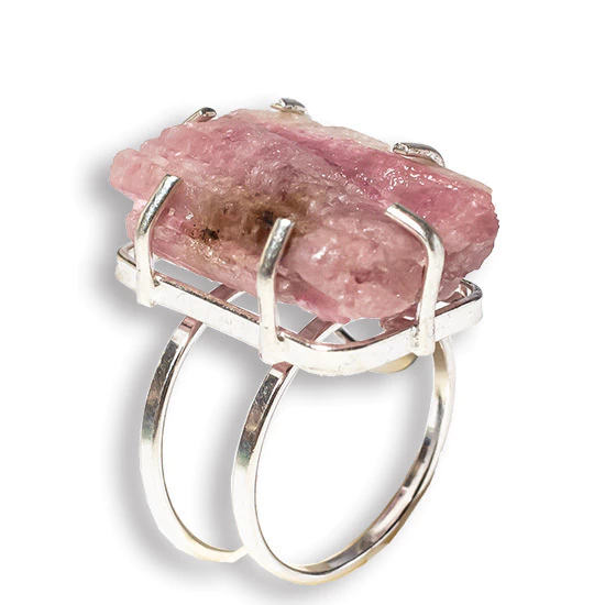 Anel Canudo Turmalina Rosa Bruto Natural Ajustável Prata 950, Anel com Pedra Bruta natural de Garimpo com montagem na garra e aro ajustavel ao dedo reforçado na Prata 950, Lindo brilho serve do 12 ao 30.