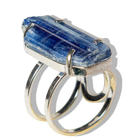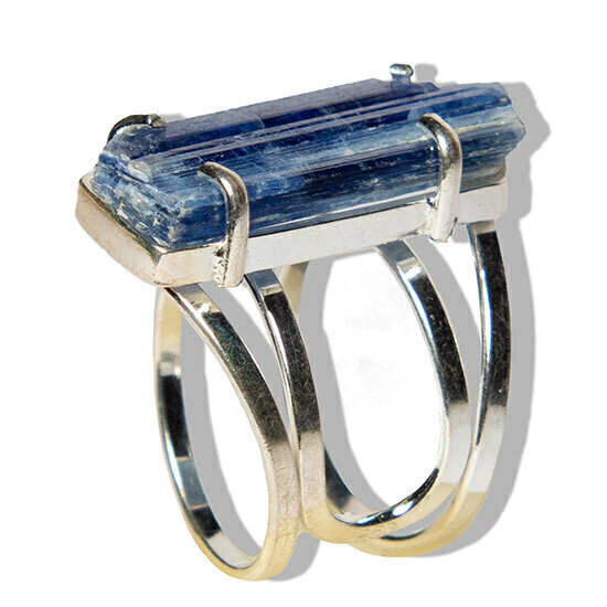 Anel de Cianita Azul Natural em Prata 950 com Montagem em Garra – Equilíbrio e Elegância