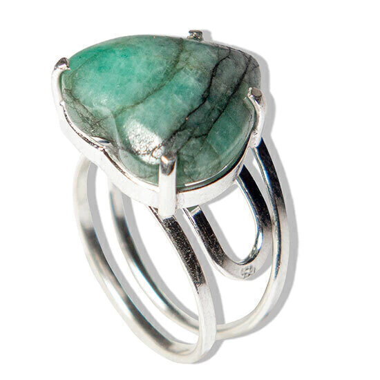 Destaque sua beleza com este anel exclusivo de Esmeralda natural, lapidado manualmente em formato de coração. Montado em Prata 950 (Prata de Lei), o anel possui aro ajustável, adaptando-se perfeitamente a qualquer dedo, oferecendo conforto e elegância.