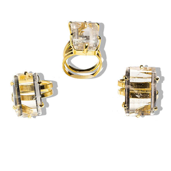 Anel Pedra Cristal Multifacetado Lapidação Manual montagem banho em flaxh dourado aro ajustavel ao dedo serve do 12 ao 30 mineral Natural de Garimpo Pedra com ótima Cor.
