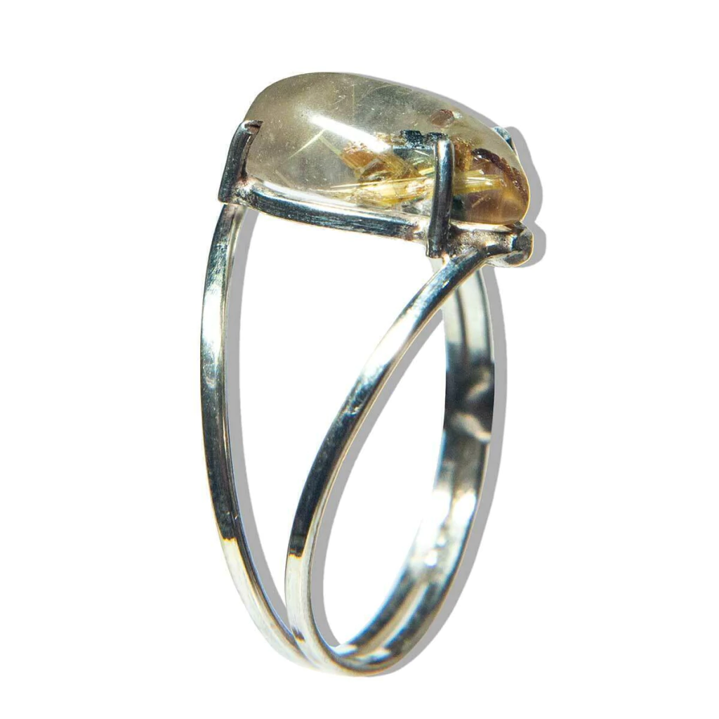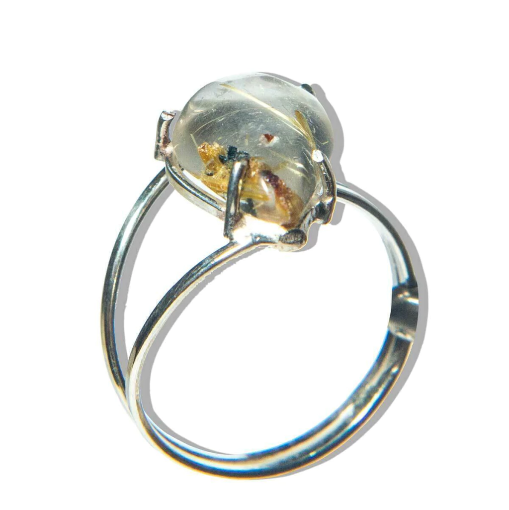 Anel Cristal Rutilado Gota Cabochão 13mm Ajustável Prata 950, Anel em Prata 950 Pedra natural e exotica lapidado Gota Cabochão Liso Montagem manual Prata de lei com aro ajustavel em qualquer dedo joia reforçada com pedra Brasileira mineral autêntico de garimpo