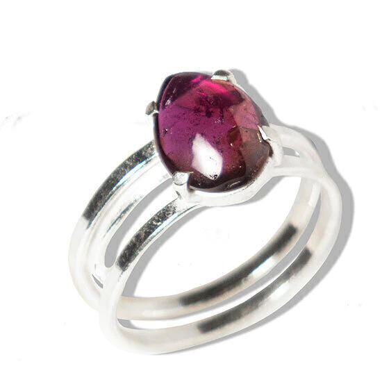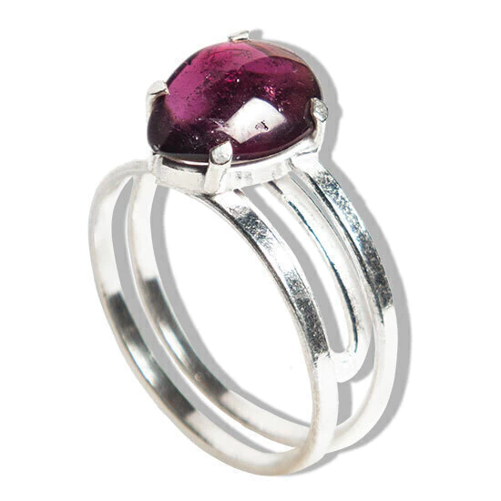 Observações: Cada anel é uma peça única, podendo haver variações naturais nas tonalidades da Rodolita e pequenas inclusões, características das pedras naturais.