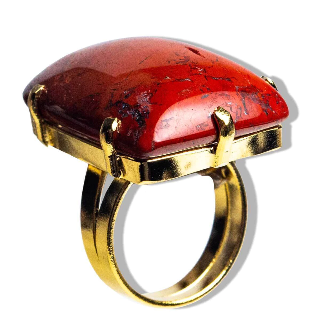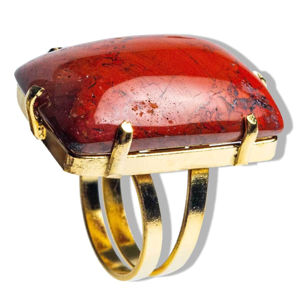 Anel Pedra Jaspe Africano Formato Cabochão Retangular Lapidação Manual estilo esmeralda aro ajustavel ao dedo serve do 14 ao 25