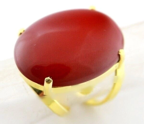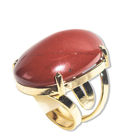 Anel Jaspe Vermelho Cabochão Oval Pedra Natural Dourado