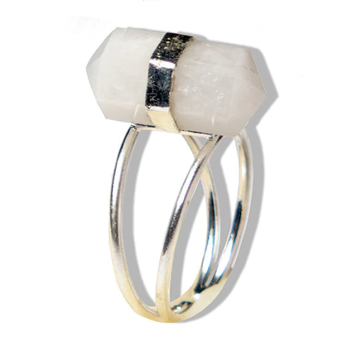 Anel Quartzo Leitoso Bi Terminado em Aro Ajustável Prateado