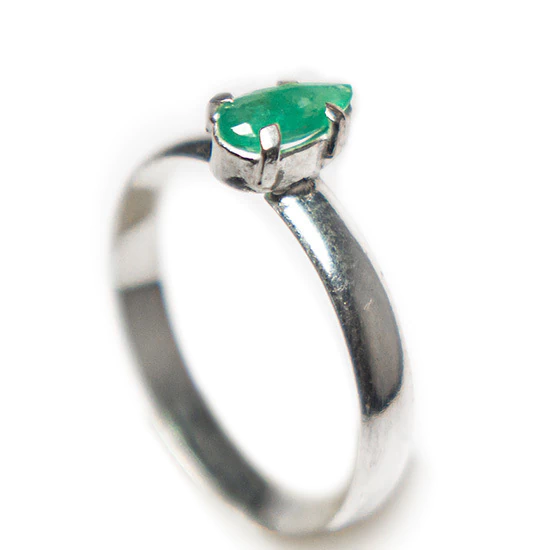 Elevação do Estilo com Elegância: Anel Solitario de Gema Gota Facetado Esmeralda Prata 950 Exótico e Lapidado. Sofisticação em todos os seus visuais!