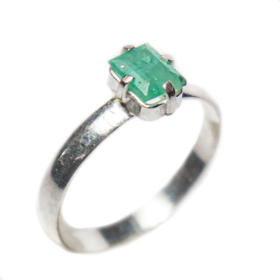Elevação do Estilo com Elegância: Anel Solitario de Gema Retangulo Facetado Esmeralda Prata 950 Exótico e Lapidado. Sofisticação em todos os seus visuais!