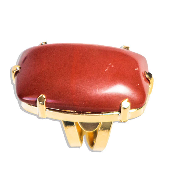 Anel Pedra Jaspe Vermelho ,formato Cabochão Retangular Lapidação Manual aro ajustável ao dedo serve do 14 ao 25 .Ideal para presentar ou mimo para si próprio .