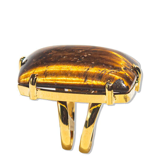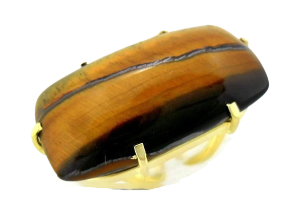 Anel Pedra Olho de Tigre Formato Cabochão Retangular Lapidação Manual estilo esmeralda aro ajustavel ao dedo serve do 14 ao 25