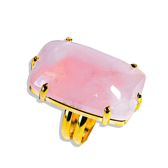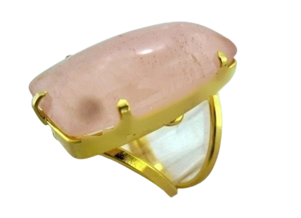 Anel Pedra Quartzo Rosa Formato Cabochão Retangular Lapidação Manual estilo esmeralda aro ajustavel ao dedo serve do 14 ao 25