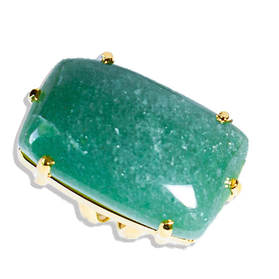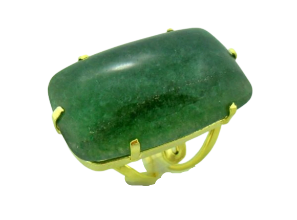 Anel Pedra Quartzo Verde Formato Cabochão Retangular Lapidação Manual estilo esmeralda aro ajustavel ao dedo serve do 14 ao 25