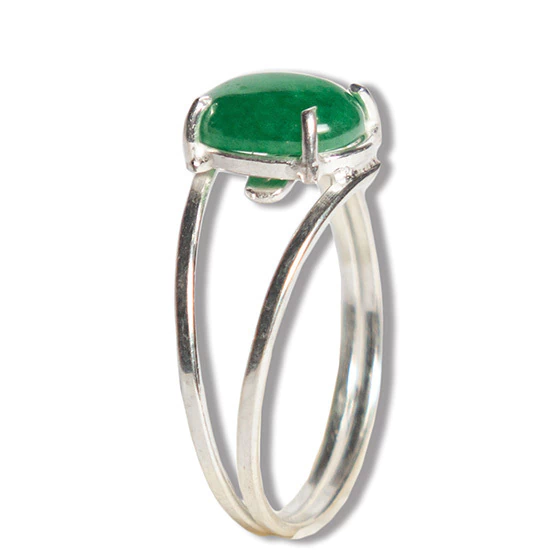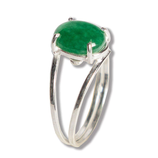 Anel Solitario Jade Verde Oval 10mm Aro Ajustável Prata 950, Anel em Prata 950 Pedra Jade verde natural lapidação Cabochão Oval Liso Montagem manual Prata de lei com aro ajustavel em qualquer dedo joia reforçada com pedra Brasileira mineral de garimpo