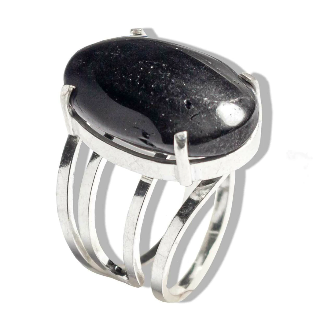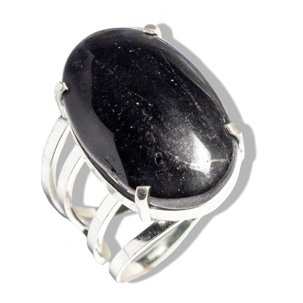 Anel de Turmalina Preta Cabochão Oval em Prata 950 Ajustável
