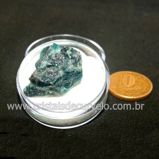 Estojo Com Amostra de Apatita Azul tamanho ideal para colecionadores exigentes, totalmente natural da forma que saiu do garimpo, raro de encontrar Estojo em Poriuletano + Espuma para Pedra + Tampa Estojo para proteção do mineral