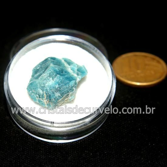 Estojo Com Amostra de Apatita Azul tamanho ideal para colecionadores exigentes, totalmente natural da forma que saiu do garimpo, raro de encontrar Estojo em Poriuletano + Espuma para Pedra + Tampa Estojo para proteção do mineral