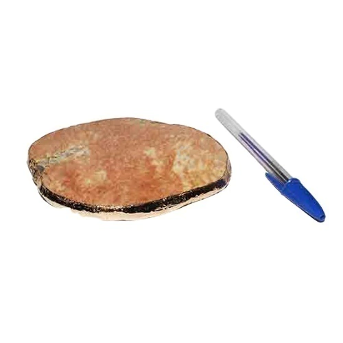 Bandeja de Feldspato natural com 11 centimetros com borda dourada ideal para petisqueira e uma otima decoração Parte superior polida
