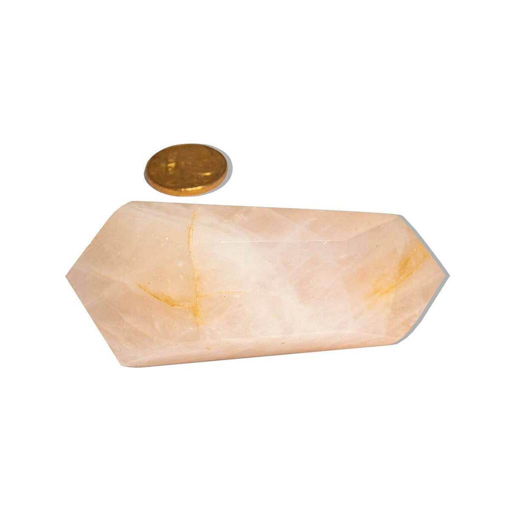 Descubra o poder transformador do Quartzo Rosa, uma pedra natural com uma energia suave e regenerativa. Este cristal com lapidação de Facetas e ponta dupla foi projetado para maximizar a fluidez energética e oferecer harmonia emocional, além de promover amor próprio, equilíbrio e clareza.