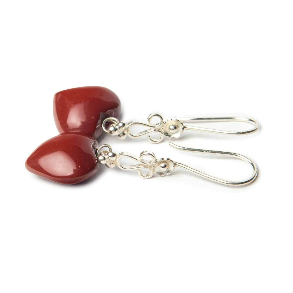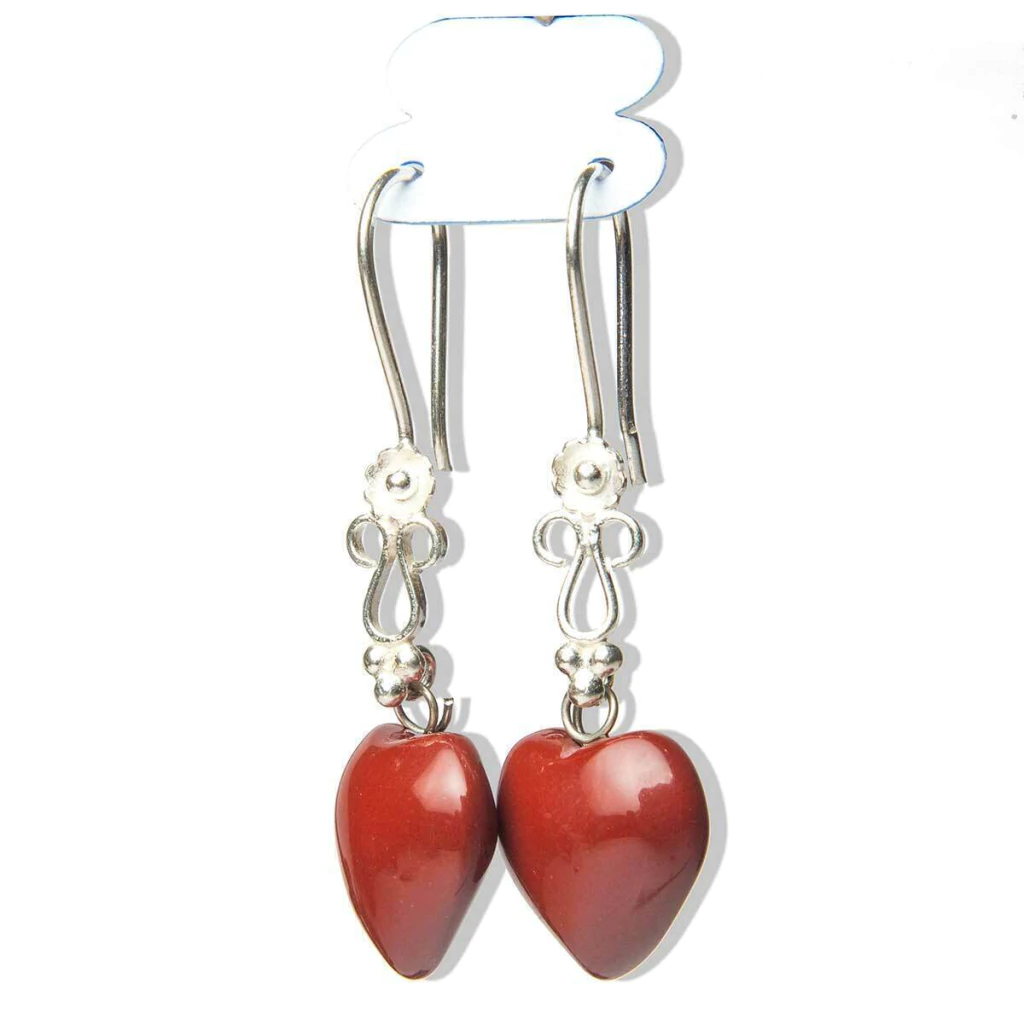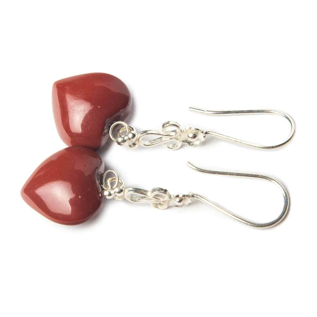 Brinco NLux: Brinco Anzol Coração Jaspe Vermelho Natural em Prata 950. Elegância e estilo em uma só peça. Aproveite e compre já o seu!
